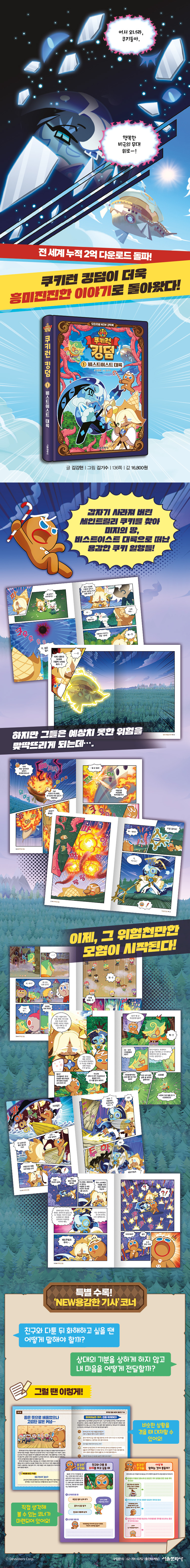 전 세계 243개국에서 누적 2억명 이상 다운로드를 돌파한 인기 게임 쿠키런 킹덤이 이번엔 《쿠키런 킹덤 오리지널 NEW 코믹북》으로 찾아왔다. 이번에 새롭게 출간된 1권 「비스트이스트 대륙」은 용감한 쿠키가 갑자기 사라진 세인트릴리 쿠키를 찾아 비스트이스트 대륙으로 떠나는 모험담을 흥미진진하게 담았다.
